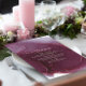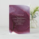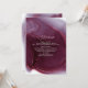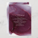 Um fundo de abstrato que lembra a tinta líquida em tons de burgundy profunda através de ciano e branco é o pano de fundo para elegantes textos manuscritos e layouts modernos de design nos pedaços desta bela suíte de casamento. O menu de casamento mostrado aqui apresenta o acima e uma modelo para adicionar suas próprias informações pertinentes sobre o evento. Procure ID762 para ver todas as peças de coordenação neste conjunto.