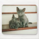 Mousepad com minha foto original de dois gatinhos das azul-cinzas que sentam-se junto em uma etapa da escada. Ambos vestem as expressões doces, inocentes tão típicas dos gatinhos que fazem o coração derreter. Nós salvamos estes dois bebês preciosos anos há de um abrigo.