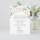 Este design inclui uma mensagem para chás de bebê à longa distância solicitando que os convidados enviem presentes diretamente aos futuros pais para que eles não precisem viajar de volta para casa com seus novos itens de bebê. Personalize a mensagem com seu nome, informações do registro e endereço ou adicione seu próprio texto personalizado. Use as ferramentas de design para editar fontes e cores do texto. Com belas flores cor-de-rosa em aquarela entre uma mistura de folhagens.