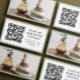 Cartão de inserção elegante para uma pequena empresa com o seu código QR e uma fotografia no verso. Envie um cartão de inserção de código QR verde e branco para sua pequena empresa personalizado com foto e texto personalizado.
