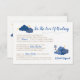 Esta aventura aguarda design apresenta balões de ar quente azuis e brancos em busca de um tesouro. o novo bebê se juntando à família! design perfeito para um casal aventureiro.