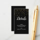 Este cartão de inserção de detalhes da festa de formatura com confete dourado em preto é perfeito para uma festa de formatura elegante, seja do Ensino Médio, Faculdade, Escola de Enfermagem ou Pós-Graduação. O design sofisticado apresenta confete dourado falso com caligrafia branca simples em um fundo preto. Ele coordena perfeitamente com os Convites de Festa de Formatura com Confete Dourado em Preto.