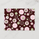Um jogo divertido para você incluir no convite para o chá de fraldas que acolhe convidados para serem inseridos em um rifle, se eles trazerem um pacote de fraldas junto com eles para o chá de fraldas. Um círculo rosa alegre e um padrão de pontos em um fundo marrom de chocolate é perfeito para qualquer chá de menina também.