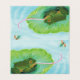 Inseto de captura de sapo. Inseto de caça a sapos. Durante sua vida, um sapo vai apunhalar milhares de insetos com sua língua pegajosa e extensível. Sapo verde na lily pad tentando pegar um besouro voador. Ilustração de livro.