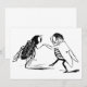 Ilustração vintage em preto e branco da Era Vitoriana, contos de fadas e rimas infantis por Edward Lear. Havia uma pessoa idosa de Skye, que valsava com uma mosca azulada. Um design divertido, bobo e humorístico com dois insetos dançando.