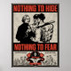 Este poster de propaganda da INGSOC é inspirado não só pelo poderoso discernimento criativo de Orwell, mas também pela propaganda da Revolução Cultural Chinesa nos anos 60. Tentamos imaginar o que uma pessoa andando pela rua na Airstrip One veria. Você não tem nada a temer enquanto não tiver nada a esconder.