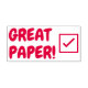 Este design de carimbo motivador apresenta a mensagem "PAPEL EXCELENTE!". Ele também apresenta um ícone de marca de seleção decorativa. Ele poderia ser usado por um professor, educador, instrutor ou tutor ao marcar tarefas, para indicar que o aluno fez um trabalho de excelente.