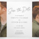 Esta chave para salvar a data design apresenta uma grande foto horizontal e uma saudação de script que abrange toda a parte externa desta placa tripla. A saudação à frente diz simplesmente "Salve a Data". À medida que você abre completamente o cartão você vê uma foto à esquerda, uma foto à direita, e no meio você salva o texto da data. Esta design faz uma declaração chique e moderna. O layout multifoto permite que você carregue um total de três de suas fotos favoritas. *DESIGN TIP: Certifique-se de escolher "PREENCHER" para que as suas fotos se aproximem da borda. "Desmascarar" as fotos, se necessário, para editar.