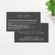 Você criou uma bela joia e quer que seu cliente esteja satisfeito. A inclusão de um cartão de assistência no seu pedido é uma excelente maneira de instruí-los sobre a melhor maneira de cuidar do seu item feito à mão. Este cartão de informações é fácil de personalizar com informações específicas à sua linha de produtos. Adicione seu logotipo no sentido inverso, assim como informações de contato. Se você não tiver um logotipo, exclua o ícone e adicione o nome da sua empresa. Ideal para vendedores online e pequenas empresas. Este cartão de informação pós-compra está sobre um fundo branco com escrevendo dourado. Os produtos correspondentes para a sua empresa de joalharia artística estão disponíveis.