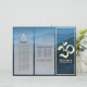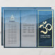 Yoga Malhação Studio / Instrutor de Meditação / Treinador Pessoal / Treinador de Vida / Healer / Mestre de Reiki / Modelo de Brochuras de Três Dobradiças de Massagem - Símbolo de Om de Folha de Ouro de Faux Moderno em Fundo do Padrão de Onda Azul Escuro.