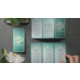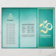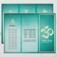 Instrutor de Meditação do Yoga Studio / Treinador de Vida / Healer / Mestre de Reiki / Modelo de Brochuras de Três Dobradiças da Terapia de Massagem - Símbolo de Om de Folha de Ouro de Faux Moderno em Fundo de Cor do Aqua de Turquesa Verde Azul.