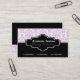 O damasco branco roxo preto interioriza a cartão de visita, apresentando uma cor damasco roxa e branca. A parte inferior é de cor preta sólida. Uma faixa preta e roxa separam as duas partes. Sua empresa/nome é digitada em um rótulo preto elegante com contorno branco e roxo.
