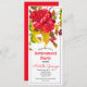 Um convite impressionante, à água, com uma flor de aglomerado vermelha, rodeada de folhas verdes e douradas. Escolha a cor na parte de trás do convite: Selecione uma cor de fundo à direita da área de trabalho. "Mostrar Seletor de Cores" tem uma seleção infinita de cores. <a href='https://www.freepik.com/free-vector/hand-drawn-watercolor-floral-brochure-designs_1854375.htm'>Projetado por Freepik</a>). <br/>() A placa é fácil de personalizar com seu texto, fonte, cor da fonte e escolha de seis tipos de papel.<br/>() Não exatamente o que você está procurando? Todos os nossos produtos podem ser personalizados para atender às suas necessidades sem custo extra.<br/>() Basta entrar em contato conosco em askcottonlamb@gmail.com<br/>() Coordenando os produtos disponíveis: