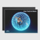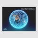 Uma imagem de ficção científica fractal em 3D de um homem solitário segurando os bares da jaula azul esférica em que está preso. Estrelas brilham no céu escuro. Adicione seu próprio texto.