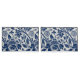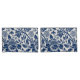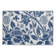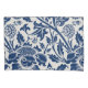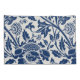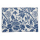 Intricate blue floral pattern on a light background, featuring stylized blooms and curling leaves, evoking a vintage, elegant feel.