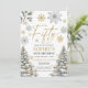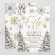50 convites de aniversário com flocos de ouro e prata e pinheiros. Ideal para a sua 50ª festa de aniversário de inverno.