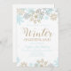 floco de neve azul e dourado inverno orland primeiro convite de aniversário