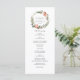 Nosso elegante programa de casamento apresenta os detalhes da sua cerimônia em letras cinzas elegantes, emolduradas na parte superior por uma grinalda em aquarela com flores de inverno, frutas vermelhas e pinhas.