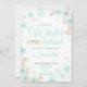 Convite de Aniversário Winter Onederland Verde Dourado Floco de Neve