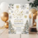 Sessenta convites de aniversário com flocos de ouro e prata de neve e pinheiros. Ideal para a sua 60ª festa de aniversário de inverno.