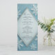 Winter Wonderland Blue Snowy Romântico menu de casamento e programa tudo em um único cartão Passo a uma magia terra maravilhosa de inverno branca com esta design romântica e aconchegante com flores de fosco mole, brilho gelado e flocos de neve elegantes. A paleta combina sotaques azuis, brancos, brilhantes e sutil charme de Natal para criar um estilo sazonal eterno — perfeito para casamentos de dezembro ou comemorações festivas. Um toque de elegância infantil encontra amor quente com texturas florais, matizes gentis e um humor romântico moderno. Esta design faz parte de uma coleção de casamento personalizável e foi cuidadosamente criada com a ajuda da IA para apoiar a criatividade. Eu posso ganhar uma pequena comissão através de compras feitas através de links de referência de mídias sociais.