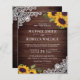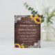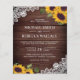 Incêndios para seus hóspedes com este elegante convite de casamento rústico com lindos girassóis e rendas com tipografia moderna em um fundo de madeira rústica. Basta adicionar os detalhes do seu evento neste modelo fácil de usar para torná-lo um convite de tipo único.