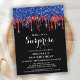 Convide amigos e família para a sua festa de aniversário com estes elegantes convites de festas de aniversários de brilho patriótico preto, vermelho e azul, e de festa. Estes convites de aniversário vermelho, azul e preto também são perfeitos para aposentadoria e festas de formatura e comemorações, apenas mude o evento na guia personalização. Esta coleção de aniversário temática American Flag dos EUA será uma favorita entre todos os militares, veteranos, polícia e forças armadas, assim como eventos empresariais e empresariais. Visite nossa coleção de aniversário patriótica para convites de aniversário brancos e azuis, favores de aniversário, suprimentos de festas. COPYRIGHT © 2020 Judy Burrows, Black Dog Art - Todos Os Direitos Reservados. Invit Patriótico de Aniversário Vermelho Azul-Brilhante
