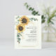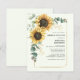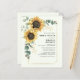 Orçamento Eucalyptus Floral Chá de panela Sunflower. Crie um cartão de Chá de panela girassol moderno com este modelo giro com um belo buquê floral rústico com uma tipografia simples moderna. DICA: Cartões de suíte de casamento iguais, como RSVP, programas de casamento, banners, tapeçarias, etiquetas de presentes, placas e outras pegadas de casamento e guloseimas estão disponíveis na coleção abaixo com esta design.