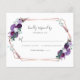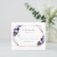 Cartão RSVP de Orçamento de Casamento de Script Puro Floral Geométrico Moderno. Coordena-se bem com a nossa coleção de casamentos florais geométricos roxos e apresenta uma folhagem de flores a aquarelas com a moderna tradição.