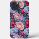 Esta capas de iphone apresenta rosas e peônias em azul-céu suave, cor-de-rosa-casca delicada e vinho tinto-escuro, com folhagem lacrimejante e roxa no fundo. Bonita e luxuosa com um olhar antigo de país que ainda é muito moderno.