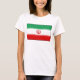A frente desta t-shirt exibe corajosamente a bandeira iraniana com o seu distinto motivo vermelho numa banda branca com uma banda verde acima e uma banda vermelha abaixo. Isto é combinado atrás por um mapa atraente do Irã.