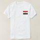 A frente desta t-shirt tem uma pequena bandeira iraquiana com a sua escrita verde familiar numa banda branca com banda vermelha acima e banda negra abaixo, enquanto a parte de trás apresenta um mapa de alivios do Iraque. Disponível em t-shirts, camisas de suor, polos, capas compridas e muito mais.