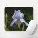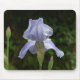 Bonito flor da íris azul púrpura e púrpura com gotas de chuva em suas delicadas pétalas. Folhas verdes e prontas para florescer flores de íris no meu jardim ao fundo Fotografia original de TamiraZDesign.