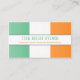 Este Legal Cartão de visita Irlandês Personalizável / Eire Flag, Duplo Lado, Profissional seria ideal para uma Loja especializada em Produtos Irlandeses ou para um Compro que vende produtos da República da Irlanda., um Bar irlandês, pub, restaurante. Poderia também ser utilizada para ajudar a promover o apoio às instituições de caridade irlandesas e às boas causas e o apoio às forças armadas irlandesas O cartão de visita foi criado de um desenho vetorial de alta resolução da bandeira irlandesa, com os cartazes desenhados por cima. O texto pode ser alterado em fonte, cor, tamanho e localização clicando no botão 'PERSONALIZAR TI'. Observe que os nomes longos da empresa exigirão um redimensionamento Esse estilo de cartão de visita está/estará disponível em cores diferentes. Obrigados de visita.