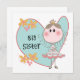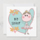 Uma pequena princesa de figura de palito em tiara sobre um grande fundo cardíaco azul com texto que diz "Irmã Grande" em T-shirts de irmã mais velha, ímanes, cartões, autocolantes, sacos de tote, correntes-chave, travesseiros, relógios de parede e muito mais!