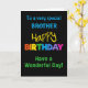 Um Cartão de Aniversário colorido para um Irmão, com letras brilhantemente coloridas num fundo preto, a palavra "feliz" em amarelo e a palavra "aniversário" em cores arco-íris.