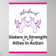 Esta poster de "Sisters In Forth Allies In Action" é uma mensagem coletiva para as mulheres se unirem para resistir ao autoritarismo.