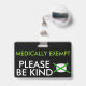 Exiba este crachá somente se estiver legitimamente isento de vestir uma máscara ou outro revestimento facial de acordo com as leis e diretrizes locais. Vestir uma máscara onde e quando você for capaz ajuda a retardar a propagação e salvar vidas.