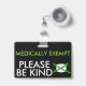 Exiba este crachá somente se estiver legitimamente isento de vestir uma máscara ou outro revestimento facial de acordo com as leis e diretrizes locais. Vestir uma máscara onde e quando você for capaz ajuda a retardar a propagação e salvar vidas.