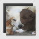 Foto de um encantador cão-pastor islandês, a abraçar-se com um cão mais velho