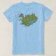 A frente desta t-shirt exibe corajosamente a bandeira islandesa com a sua cruz branca fibriada e distinta, vermelha, sobre um fundo azul. Isto é combinado atrás por um mapa atrativo da Islândia.