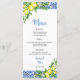Our Blue Tile Amalfi Coast wedding dinner menu card is perfect for an elegant wedding. The modern rustic yet elegant design features romantic watercolor flowers and lemons in soft tones of yellow , green, and cream white with blue tile accents. This menu can be used for a wedding reception, rehearsal dinner, or any event.