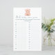 Esta é uma encantadora atividade de lista de "Itens de Bebê", perfeita para chás de bebê. No topo, um ícone de um adorável ursinho de pelúcia transmite uma sensação de calor gentil. Abaixo do ursinho, o título é escrito em uma fonte suave e acolhedora, convidando os convidados a compartilhar seus conhecimentos sobre itens de bebê. Um amplo espaço linha é fornecido para que os convidados escrevam itens de bebê, tornando-o um lindo souvenir para os futuros pais. Este cartão é uma maneira atenciosa de amigos e familiares compartilharem suas experiências e lembrarem os novos pais dos itens de bebê que eles devem lembrar.