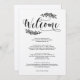 Este design de itinerário de boas-vindas de fim de semana de casamento rústico apresenta louros country desenhados à mão com uma fonte de caligrafia divertida.