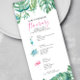 Bem-vindos a sua convidada de noiva com esta despedida de solteira tropical ao estilo costeiro, itinerário de fim de semana ou eventos do dia de casamento na praia. Este programa de casamento ilustrado com o tamanho do chá apresenta meu flamingo rosa original, coquetel, ícones da tartaruga marinha e folhas de palma de monstera trabalho de arte em tons de azul verde e azul-turquesa. Seus detalhes de verão são colocados em um elegante roteiro escrito à mão rosa e uma tipografia serif sans. A placa se reverte para uma cor rosa complementar sólida. Perfeito para casamentos verdes costeiros e tropicais, solteiros e festas nojentas de noivas se vão. Para ver mais inspiração de casamento na praia visite minha loja em www.zazzle.com/dotellabelle