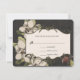 Ivory Black Green Copper Magnolia Casando RSVP. Casamentos de Magnolia com arbustos de framboesa profundos e elemento de cobre contra fundo negro e florescências de marfim magnólia grandes e belas, perfeitas para o tema do casamento da floresta ou celeiro
