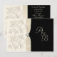 Este monograma de marfim e convite floral preto tem um marfim impresso em fita com um broche de amor pérola impresso. Todo o texto é personalizável e pode ser alterado ou removido conforme adequado. Se você precisar de outros itens neste estilo design, envie um email para niteowlstudio@gmail.com para solicitá-los. Além disso, se você gosta deste design, mas gostaria dele em outra combinação de cores, por favor, me envie um e-mail sobre isso. Os itens correspondentes existentes são mostrados abaixo.