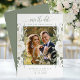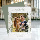Anuncie seu próximo casamento com um toque de elegância personalizada usando nosso Cartão de Encontro e Foto Sage. Esta placa elegantemente projetada apresenta um quadro fotográfico personalizável, colocado contra um pano de fundo de delicado marfim e sotaque floral. As cores quentes e convidativas e a design sofisticada oferecem a prévia perfeita para o seu dia especial, enquanto o roteiro "salvar a data" elegantemente chama a atenção para os detalhes do seu casamento. Personalize com seus nomes, data de casamento e local para garantir que seus entes queridos marquem seus calendários.