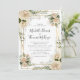 Convide a família e os amigos para comemorar a celebração do seu casamento com este elegante convite para buquês florais de marfim. Apresentando uma falso estrutura quadrada geométrica dourada, flores de marfim com folhagem verde escura e um elegante modelo de casamento desenhado com script de caligrafia e fonte cursiva.