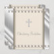 O marfim elegante e as pérolas brancas atravessam o batismo bebê ou menina, batizando, primeira comunhão e convite de confirmação. Adicione os seus detalhes à frente e atrás adicionando os detalhes do evento, estilo da fonte, tamanho da fonte e cor e texto. Esta é uma design impressa sem pérolas reais, arco, fitas, etc.